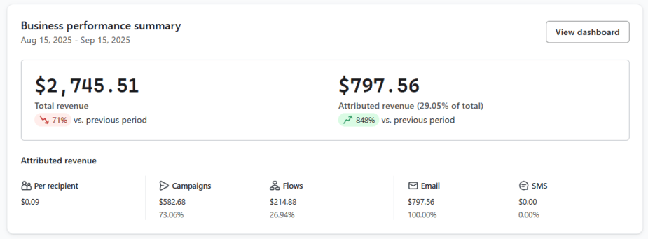 We started working with this brand when they weren’t doing any email marketing — their attributed revenue from email was 0%. After launching campaigns, email revenue grew to 30%.