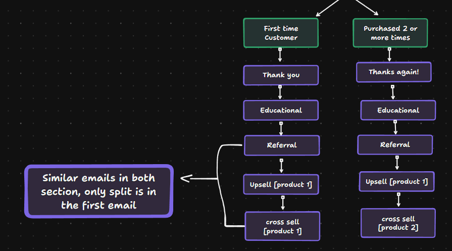 Post-purchase automation represents one of the highest ROI opportunities in email marketing when properly segmented and personalised. By differentiating between customer types and further personalising based on purchase history, you can create highly targeted messaging that drives additional revenue while enhancing the customer experience.